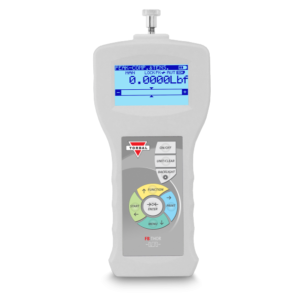 The Torbal force gauge was engineered specifically for on-the-go applications and field testing. The design of the gauge allows it to be easily maneuvered with one hand while comfortably operating the keypad. The device is extremely rugged and can withstand continuous testing in the most demanding applications.